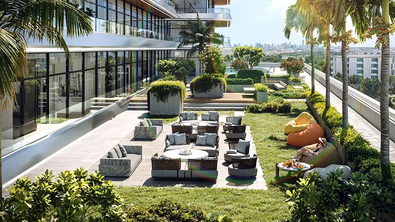 The façade is crafted from organic materials combined with satin chrome, creating a structure that is both eco-friendly and visually captivating. Each residence is an observatory, designed to offer breathtaking views of the surrounding cityscape. The open-plan design of the apartments invites natural light into every corner, creating a sense of space and tranquility. The architecture is carved for those who seek a lifestyle that blends relaxation with ambition. The development offers a range of amenities that cater to both personal wellness and social interaction, ensuring that residents have everything they need to thrive.